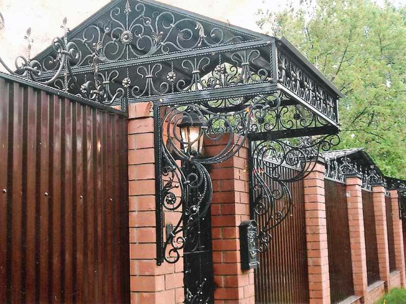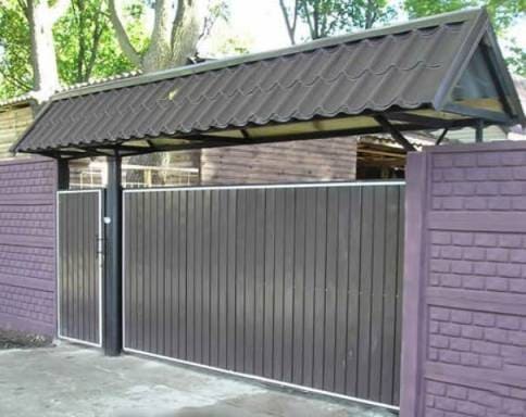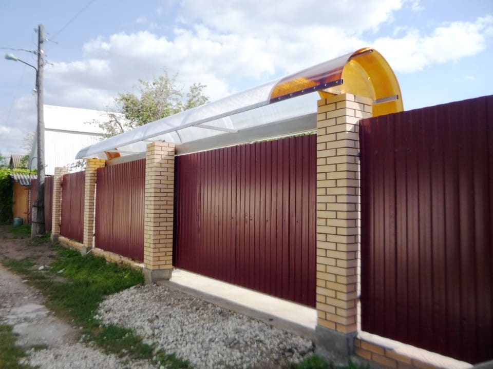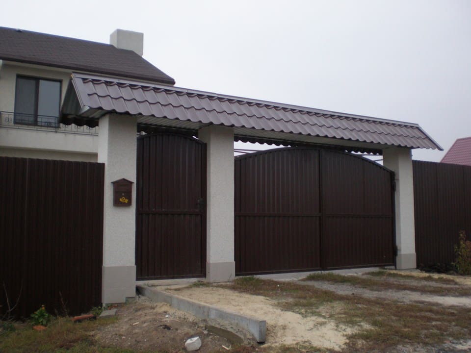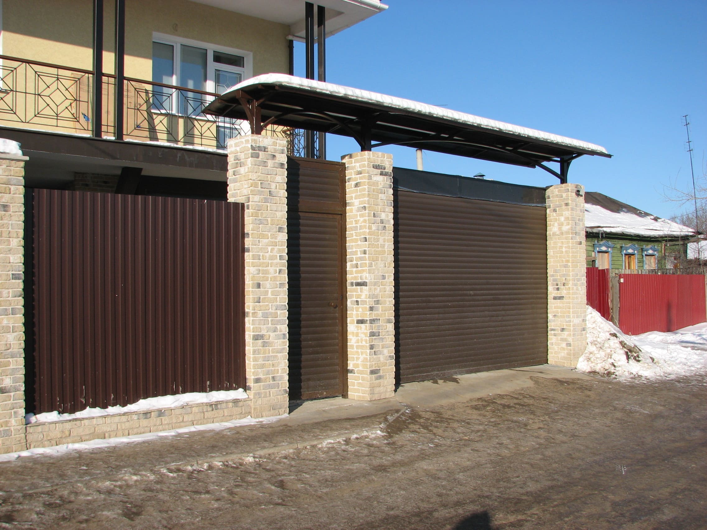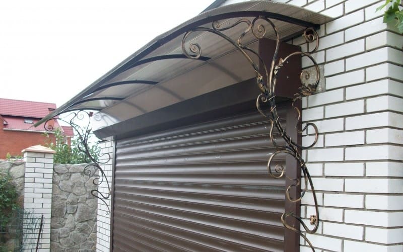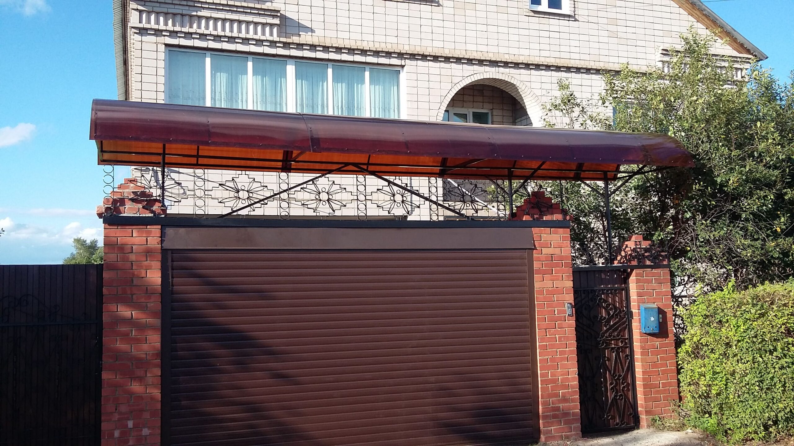 Козырек над воротами может быть как типовой, так и выполнен по индивидуальным размерам. Дизайн козырька формируется с выбора материала и проектирования конструкции с расчетом нагрузки