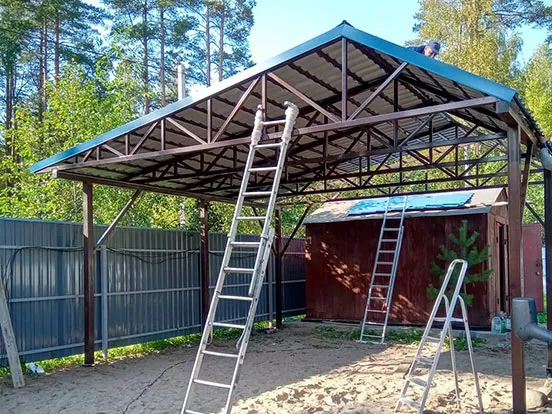 Гараж мне на даче не нужен, а навес для машины-отличный выход, созвонился, определились со временем, приехал замерщик, показал, рассказал, у меня место, да и потребность для одной машины, заключили договор, и вчера принял работу, на всё ушло, примерно три недели, но это с моими датами. Добротный навес, необходимая вещь, цена адекватная. Качество навеса и монтажа -топ. Рекомендую, годная контора.